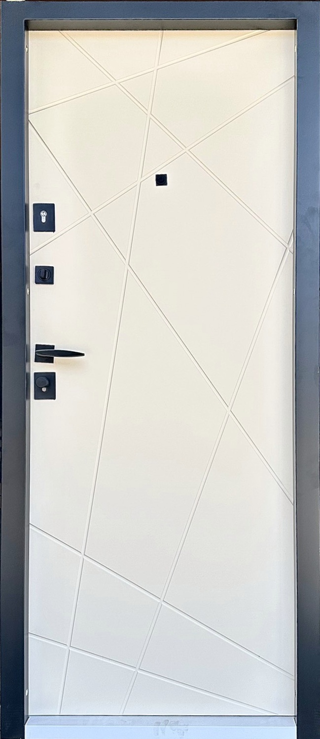 Вхідні квартирні двері з чорною фурнітурою з високою термо і шумоізоляцією