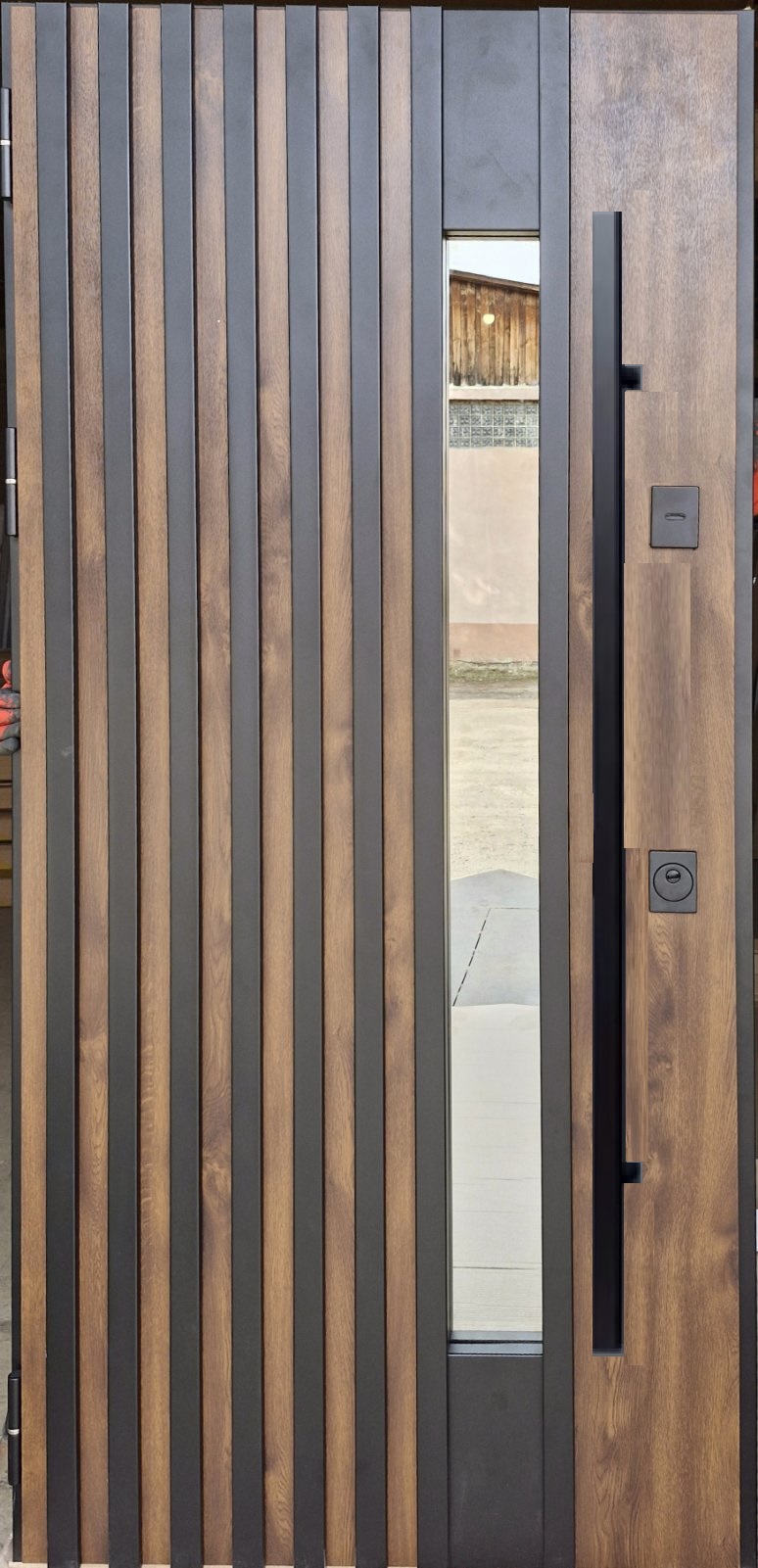 Вхідні вуличні двері Magda 717 стуктурований склопакет 2 Т-6.23 Дуб бронзовий+Графіт темний